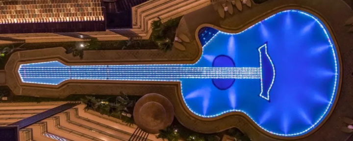 以吸引眼球的開闊水樂區域為中心,城堡、水寨、動感水區、幼兒戲水池、成人泡池、親子泡池、魚療池等分布在其周圍,蔥郁的植物或景觀,分隔空間。