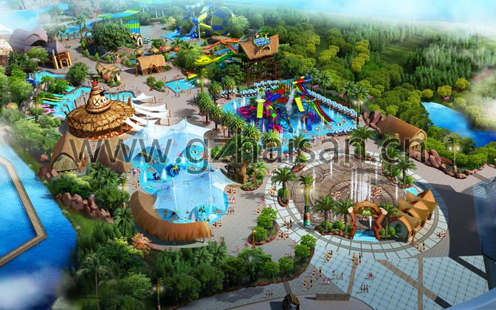 水上樂園設(shè)計以企鵝的馬達加斯加探險之旅為主題,在設(shè)計上注重攝取雨林地理風(fēng)貌、人文風(fēng)情、建筑藝術(shù)、生態(tài)景觀等鮮明的主題元素,建筑設(shè)計充分吸收雨林文化和海洋文化的元素,讓游客恍若置身于激烈的非洲熱帶雨林度假氛圍中,使情景體驗與度假休閑有機結(jié)合與有效實現(xiàn),營造熱帶風(fēng)情水上休閑世界。