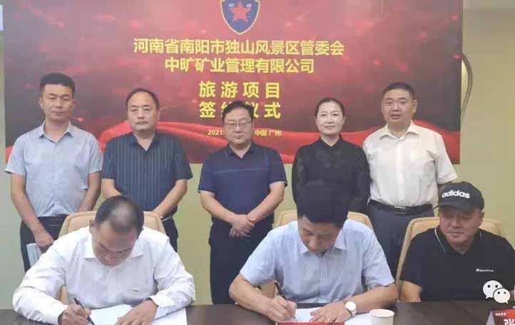 9月24日下午,臥龍區獨山風景區管委會在廣州市與中曠礦業管理有限公司簽訂了獨山區域旅游開發框架協議。將就獨山風景區景觀打造、基礎設施提升及利用山體東側白河零號橡膠壩水面建造水上樂園展開深度合作。根據協議約定,“中曠礦業”在獨山文旅項目上將攜手“海森文旅科技集團”“華強方特文化科技集團股份有限公司”等四家企業共同投建。